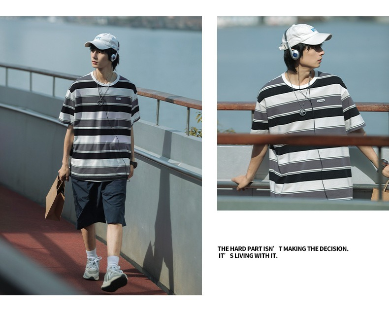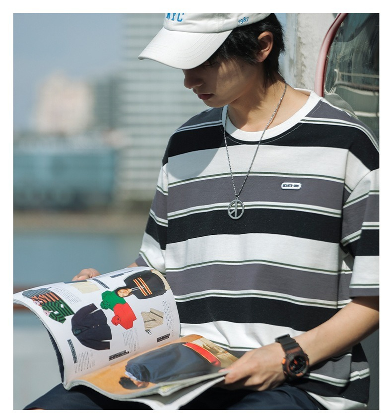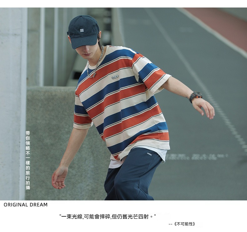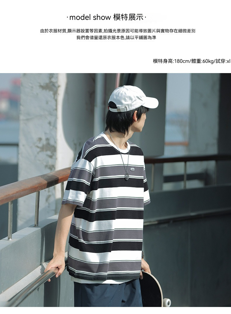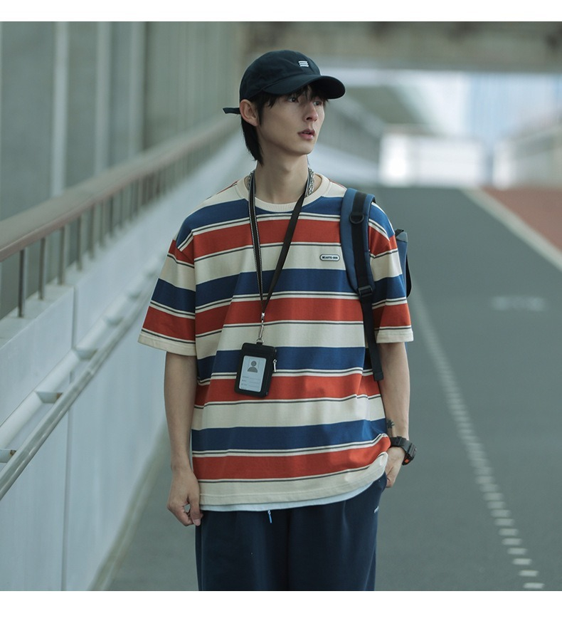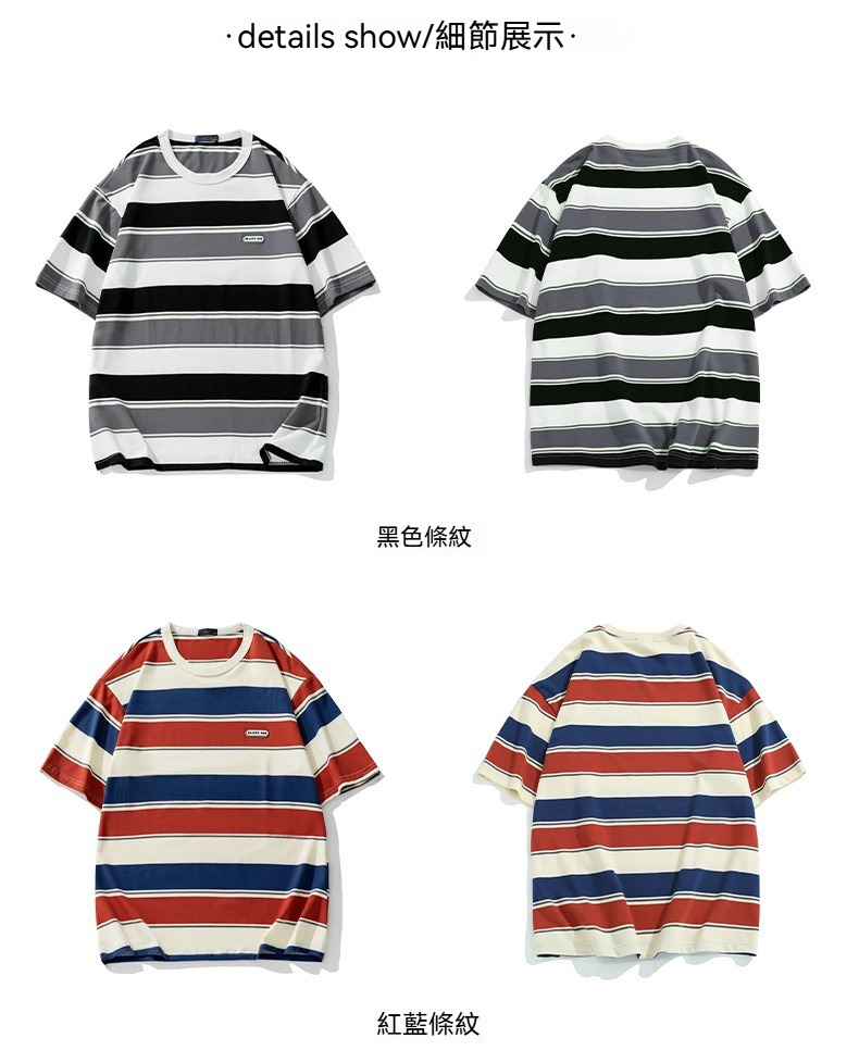 【經典條紋】日系復古撞色條紋寬鬆短袖T賉