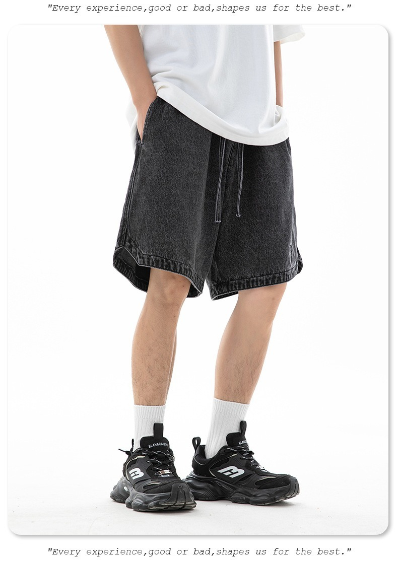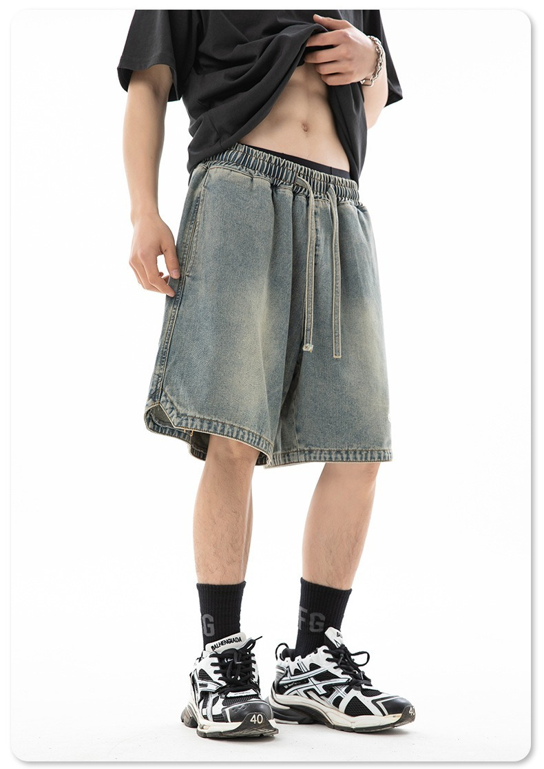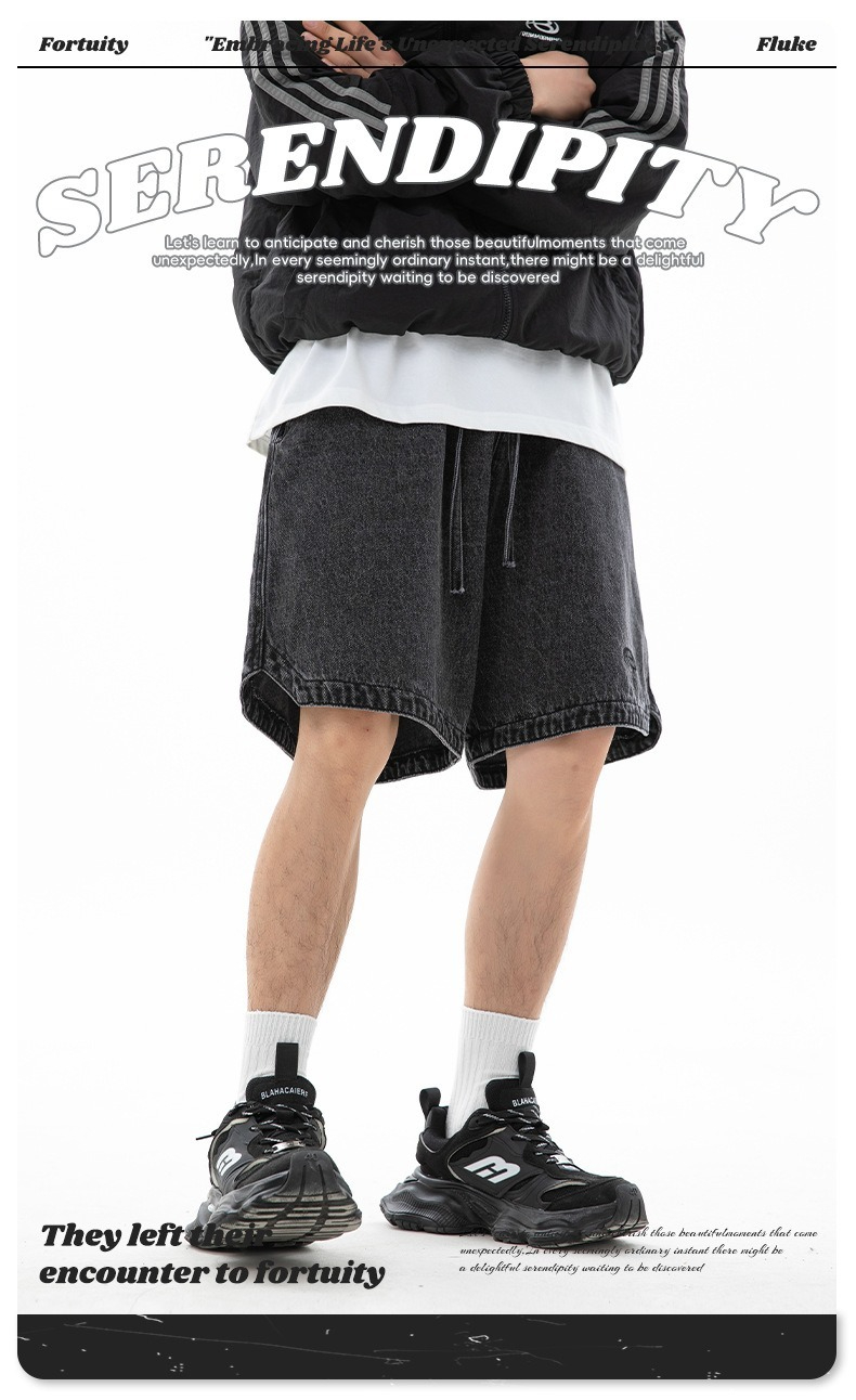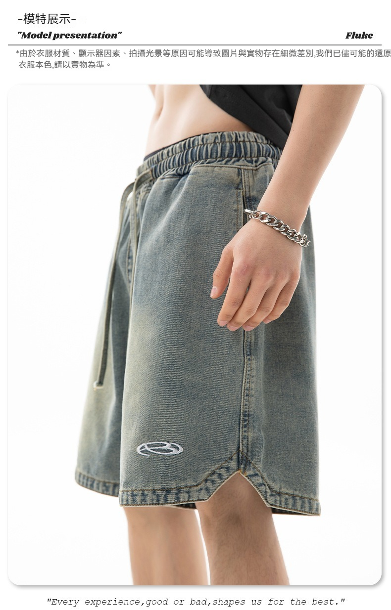 【美潮牛仔】下擺三角開叉設計美潮牛仔寬鬆五分男士短褲