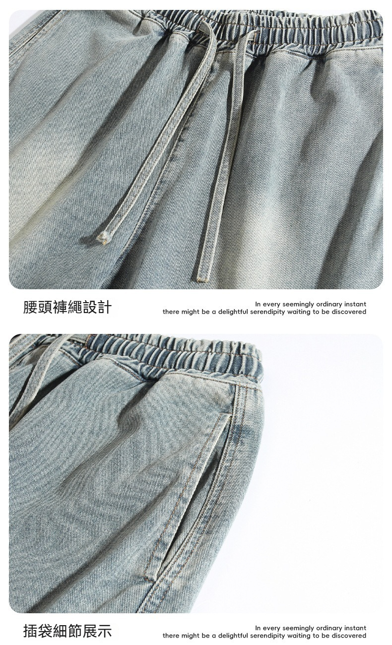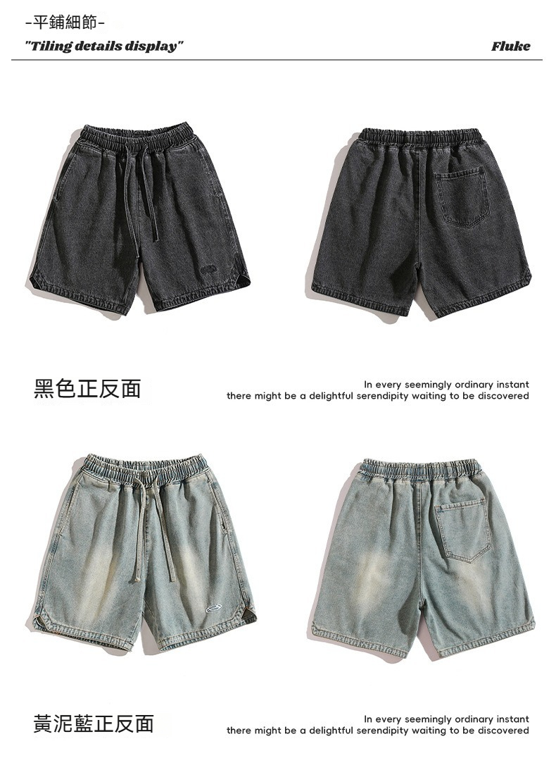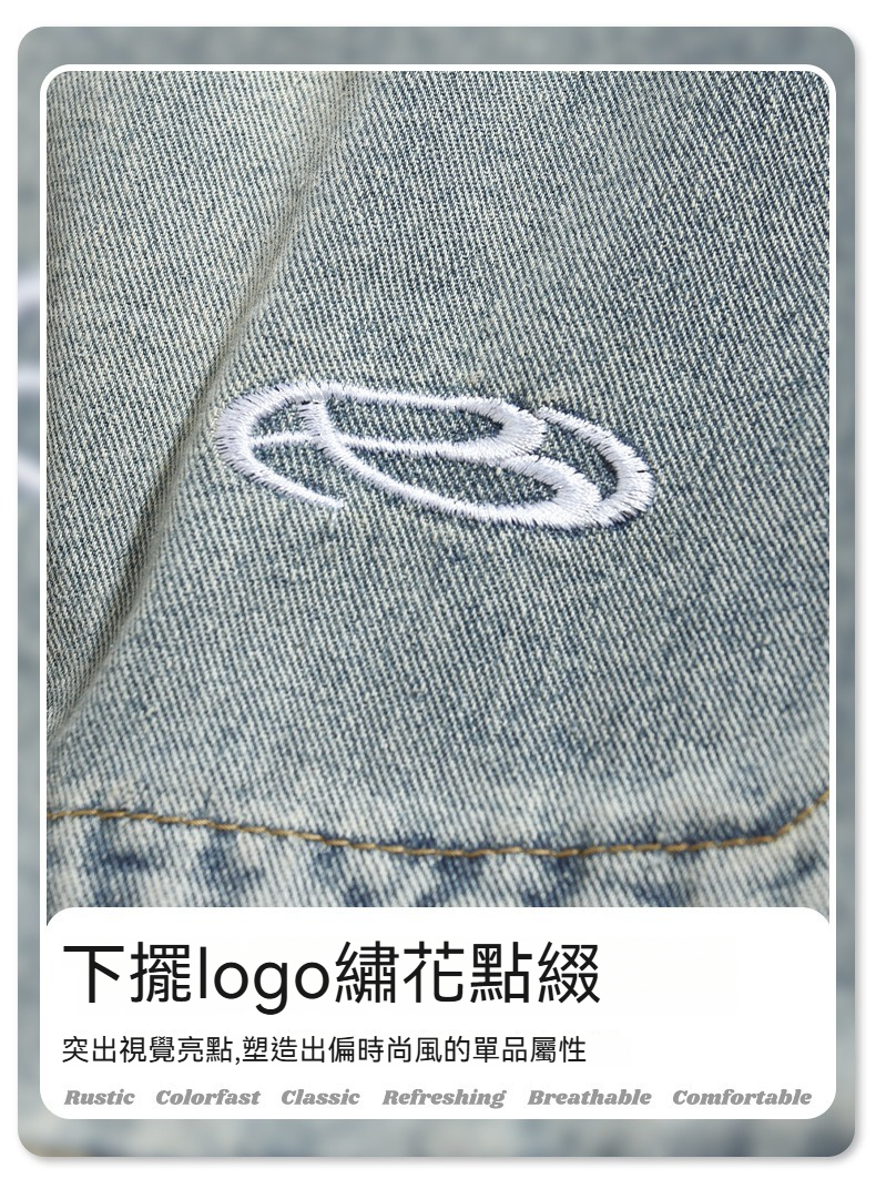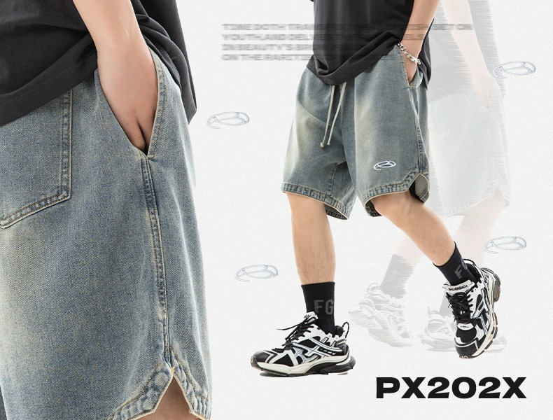 【美潮牛仔】下擺三角開叉設計美潮牛仔寬鬆五分男士短褲
